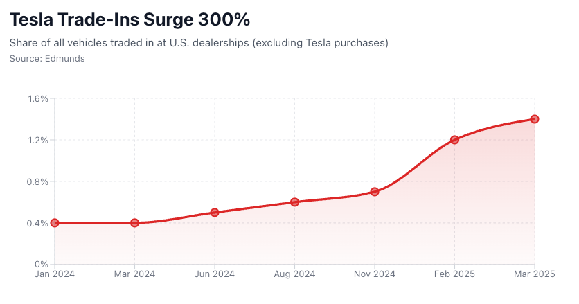 Chart of the Week: Starting in 2025, consumers nationwide and across more than 250 cities worldwide launched the “Tesla Takedown” in protest of Elon Musk. As Tesla owners rushed to dump their vehicles—trade-ins surged 300% year-over-year, hitting an all-time high. On Wednesday, Tesla reported its first-ever annual revenue decline and a 61% drop in net profit for Q4:2025.